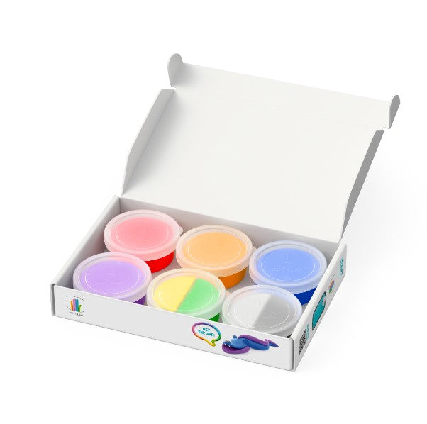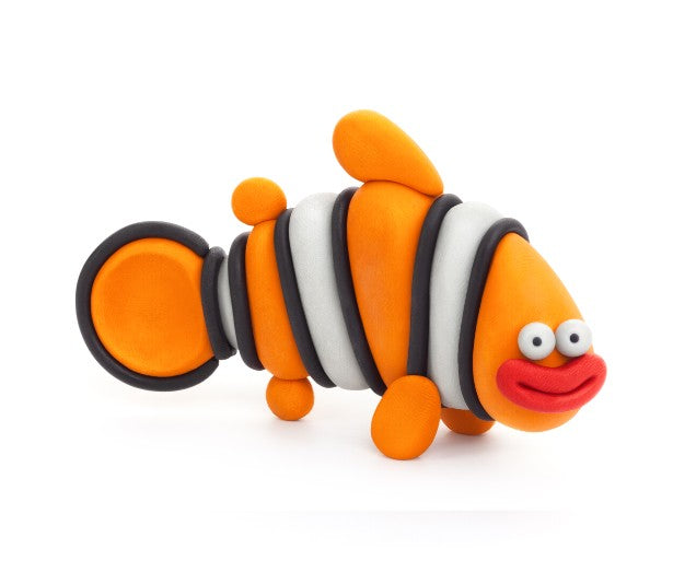 The Set Includes : 3 Funny and Lovely Characters Discus Fish, Clownfish and Eel - 6 Cans - 2 Sculpting Tools - QR code for sculpting instructions in the app