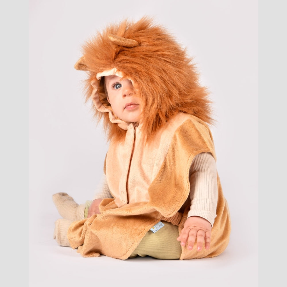 A cute and cuddly Lion costume for the little ones. Just like our other mini capes, the Lion Cape has a Velcro closure at the front and elastic bands on the sides for easy dressing and undressing. This also makes it easier to play and frolic in. The cape has ears on the hood and tail on the back. Faux fur is on both the hood and the end of the tail. A favorite with little ones!