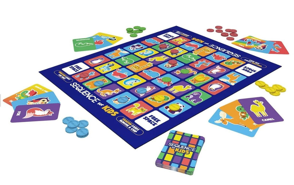 The classic family game Sequence is now available for kids! Play a card from your hand, place a chip on the corresponding character on the game board… when you have 4 in a row, it’s a SEQUENCE!! Learn to block your opponents and remove their chips. With a little strategy and luck, you'll be the winner! Sequence is a fun kids board game for 2-4 players, ages 3 to 6