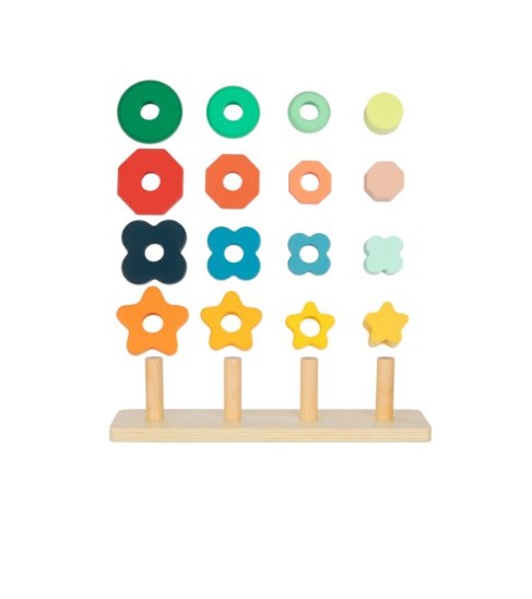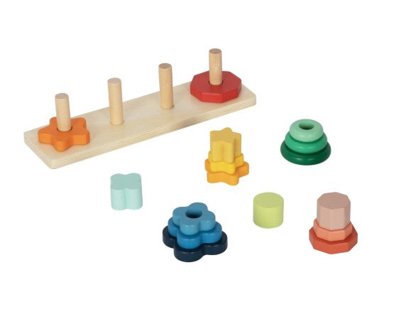 The Wooden shape sorter toy is a bright and engaging way for little learners to explore numbers, colours, shapes and early counting skills. With a sturdy wooden base and four pegs, children can match and stack the colourful shapes to their corresponding colours, supporting number recognition and colour awareness.