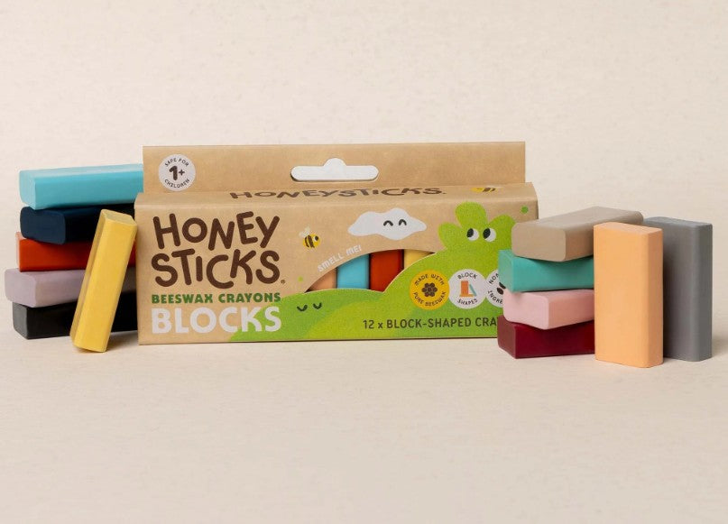 - Unique block shapes to harness creative potential: Little creators can explore artistic possibilities beyond traditional tipped crayons with Honeysticks Blocks. Colour large areas; experiment with various drawing angles; shade and blend. Creative time has even more possibilities!