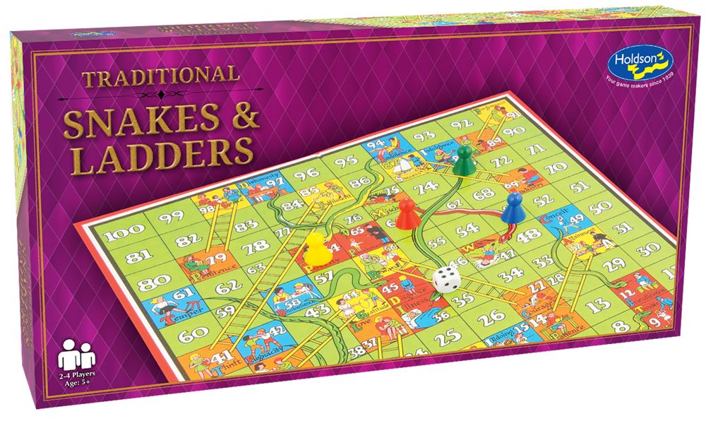 Snakes and Ladders is a classic board game designed to appeal to players of all ages. It involves players racing to be the first to get to the finish square. Along the way, you may be able to climb up a ladder or slide down a snake.