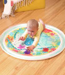 There’s so much to see under the sea with the Wonder Waves mat from B. baby! This leak-proof water mat for babies is easy to use and it comes with 6 sea animal toys – an octopus, a crab, 2 whales, and 2 starfishes. Before playtime, simply insert the ocean animals through the opening on the side, fill the center of the mat with warm or cool water, and inflate the rim with a manual air pump (or inflate it by mouth). Then let your little one explore underwater wonders and enjoy tummy time! As babies crawl and touch the sea animals floating under the surface, they’ll be improving their motor skills and sensory development along the way. And at the end of playtime, just pour the water out of the mat and remove the sea animals to let the set air-dry. Storage is also easy-peasy – this tummy time mat is easily foldable! Manual air pump is not included. y Water Mat: Fill, inflate, crawl, and play all day with a sea-themed water mat made for curious babies! Easy Setup: Fill the mat with warm or cool water, then use a manual air pump (not included) to inflate the rim – or inflate it by mouth! 6 Sea Animals: This tummy time mat comes with 6 removable and tiny hands-friendly sea animals. Size: This inflatable water mat measures 30 inches (76 cm) in diameter. Age: The Wonder Waves mat is recommended for babies 6 months +
