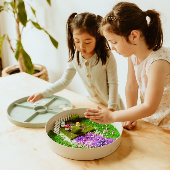Jellystone Designs' Tray Play is a 2 in 1 sensory tray where you can create a mini world in the bamboo fibre & melamine base or silicone lid. The silicone lid features beautiful textured illustrations of nature, space and garden creatures.